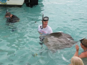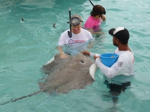 The tour operators have given names to the stingrays and they showed us Wendy who was with pup. The guide was feeding them so of course they were following him and flapping up against him for more food.
