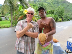 Instead we went for a walk and found this chap selling coconuts for $2US so had our first fresh coconut. The liquid is almost clear and we found very filling. He then opened up the coconut for us and we got to eat the pulp. When you eat the pulp of a fresh coconut, it is soft and almost like a jelly – the texture takes a bit of getting use to.