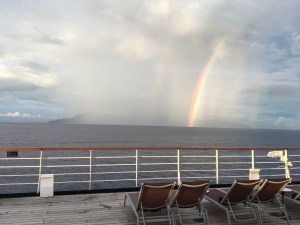 with this gorgeous, intense rainbow as we sailed past the island of Moorea.