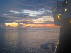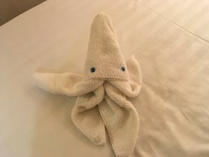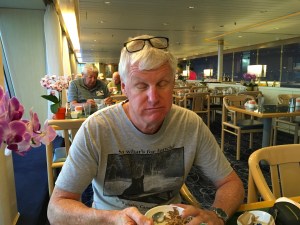 We convinced our room steward not to put chocolate in our room each evening as we didn’t like the waste of throwing it out and we wanted to reduce the temptation- we think he thought us a bit strange. So tonight we have a squid – 13/13. This means we are half way through the cruise.