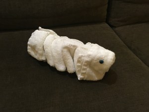 We finished off the evening with a walk around the promenade deck. We are now out to sea for the next seven days. There were no stars in the sky or moon so guess it must have been overcast which created this ink black surrounding – it made you feel very isolated which we guess we are.