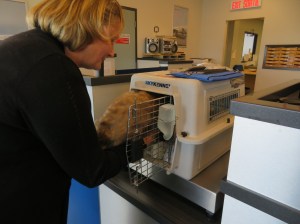 This is us trying to convince her to go in her crate. She will be in her crate for approximately 10 hours which when you think about it, is only a full nights sleep. She is known to sleep for 12 hours. We did warn the Air Canada cargo handlers that she can howl like a banshee. She is warm in her crate with her blankets and a water bottle.