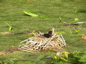 There is an abundance of Moorehens along the canals and were surprised to see this one still nesting. We are a little late in the season to see the baby goslings or ducks which is always so cute.