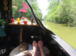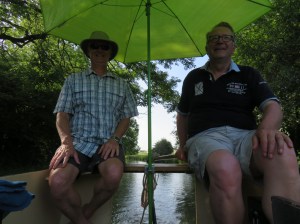 We got into the bottom lock at 11.30am and within 40 minutes we had gone through the ten locks. We are truly a well oiled machine. By midday the sun was baking us and having worked the locks we were pretty smelly and sweaty. The temperature today is four 31c which is rather warm.