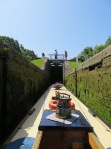 These locks are very deep, about two metres. They also attract a lot of gongoozalers! For those of you not in the know, a gongoozaler is a person who likes to watch narrow boats going through locks and provide your with their wealth of knowledge as to how incorrectly you are doing things. The other term that could be used is “Professional Meddler”.