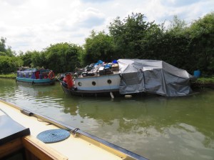 Then there was this very sad sight. You don’t necessarily see a lot of boats sinking but what you do see is a lot of rusting hulks with people living in them. There are a lot of people living in boats on the canals as it is cheaper than living in a flat. Unfortunately, you do not see many of these live aboard boats being very well maintained. We have noticed it very slow going along this part of the Grand Union Canal as you are constantly slowing down to pass all these moored boats. We can’t remember this amount of live aboards up on the northern canals. You have to slow down so as not to cause the moored boats to bang around. If you have ever been in a boat when a speedster has roared passed and you are carrying a hot cup of tea, you get just a little peeved.