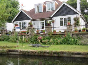 It appears that crocs are making their presence felt on the UK canals. One might think the real estate agent would have suggested that the croc wasn’t such a selling feature of the house.