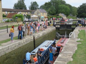 After mooring up, which we were very lucky to find, we walked back along the canal into town. This lock is fairly central to town and goodness, the gongoozalers were out in quantity. We will be heading off through the lock in the morning so we will not have this kind of audience providing us with all their words of wisdom.