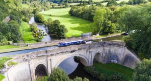 The stretch of the canal from Bradford on Avon to Bath is very scenic and hangs on the side of the valley with great scenery. Our first stop was at the Avoncliff Aqueduct which carries the Kennet and Avon Canal over the River Avon and the Bath to Westbury railway line, at Avoncliff in Wiltshire, England. It was built by John Rennie and chief engineer John Thomas, between 1797 and 1801 and is a listed building.