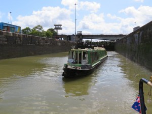 It was then back down the river at warp speed with the engine just ticking over and into the jaws of the lock. We just hung around the entrance for about five minutes after having moored to the wall and then they opened up the gates for us.