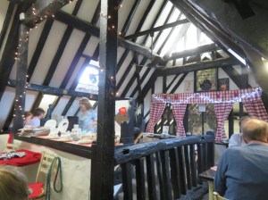 In the very roof where it was just a titch warm, was a beaut little tea shop. It had a resident one year old Cocker Spaniel earning lots of pats and a very nice atmosphere. We had tried a couple of coffee shops prior to finding this one but they both forbade dogs. The rule in England about dogs in cafés, is that it is up to the owners discretion and it has nothing to do with health regulations, except all dogs must be on leashes and not have access to the kitchen. Even as a dog owner, we find this very liberal but for us handy. We had a coffee and bun and then headed out.