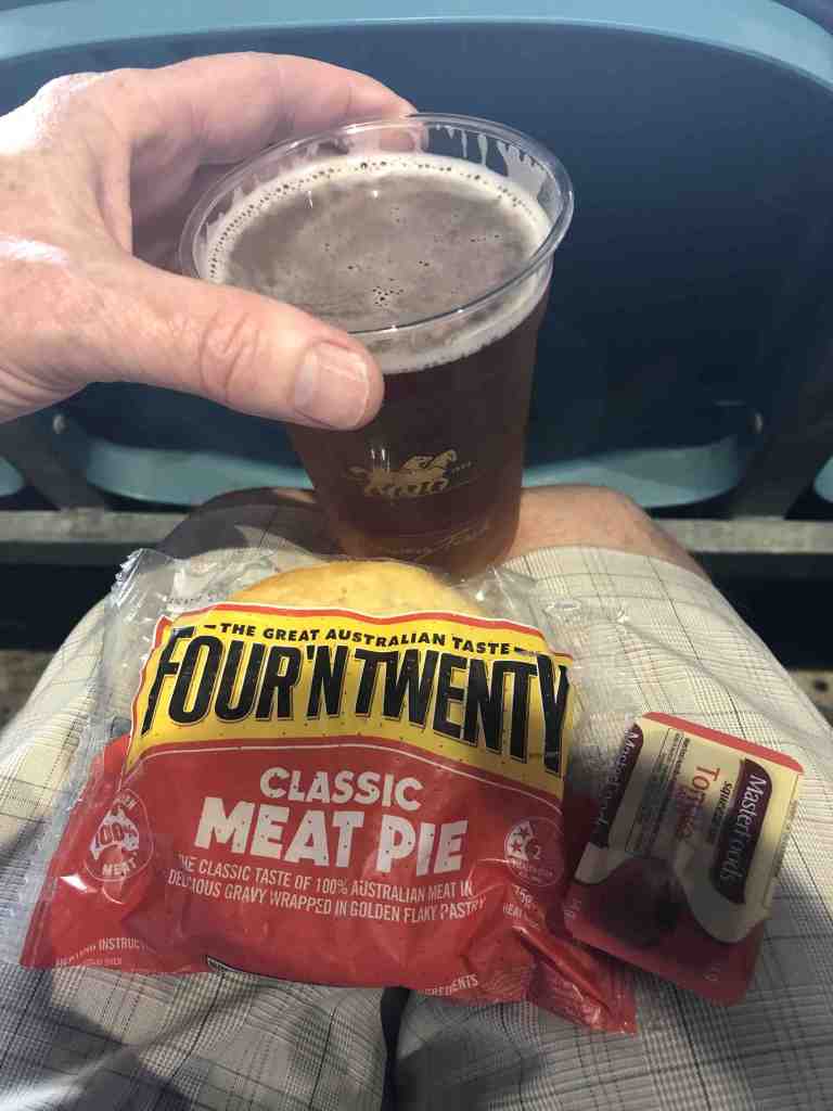 The footy Rowe’s got to experience the epitome of fine cuisine for the day which consisted of the good old four n’twenty cold meat pie and a beer.