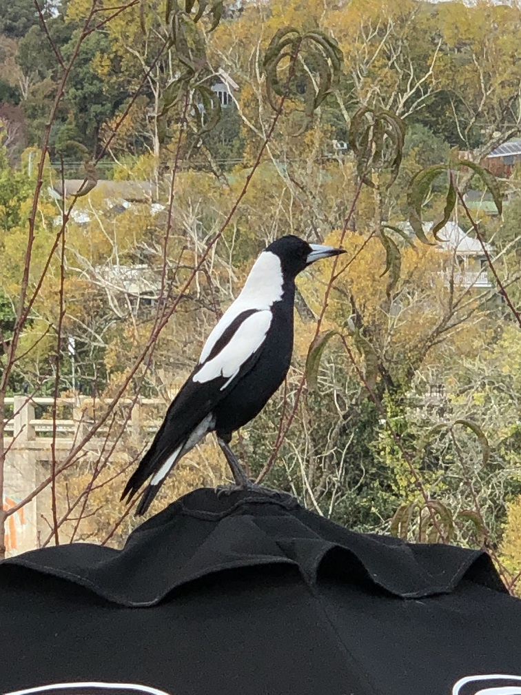 Maurice the Maggy (magpie). These guys are serious swoopers who will rip off you cap and draw blood during nesting season.