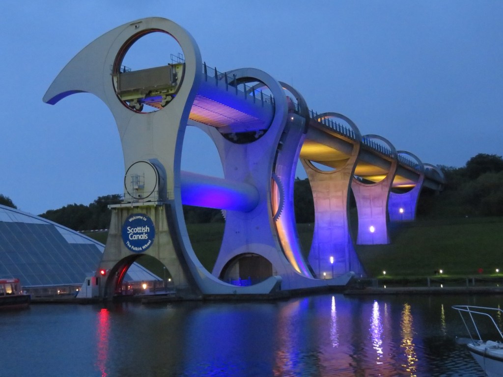 The Falkirk Wheel by night! We will go into how it all works in tomorrows blog where we hope to have some video footage and more information regarding why it was constructed.