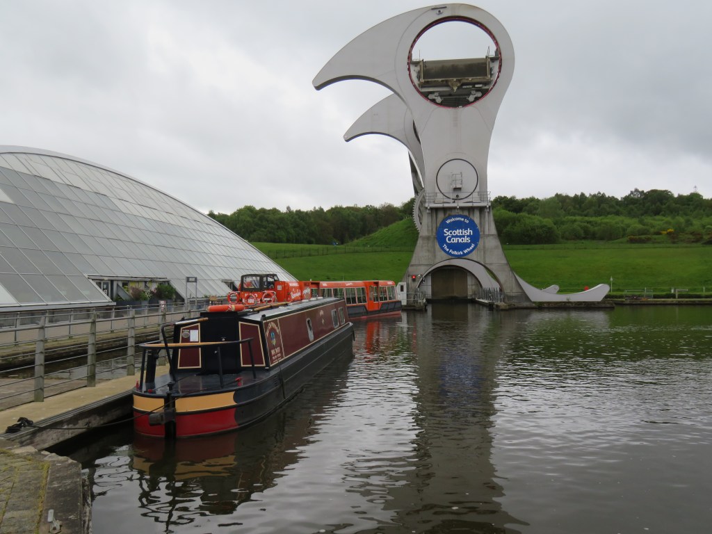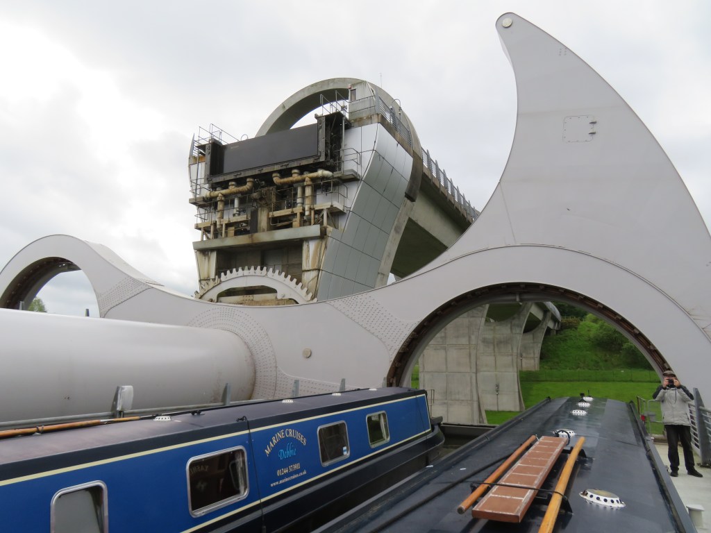 We were the first cab off the rank this morning to go up the wheel onto the Forth and Clyde canal at 10.00am. Wolfgang has put together this great video which gives you a very good understanding of how the wheel works in visual terms. Suggest you turn down the volume as poor quality.