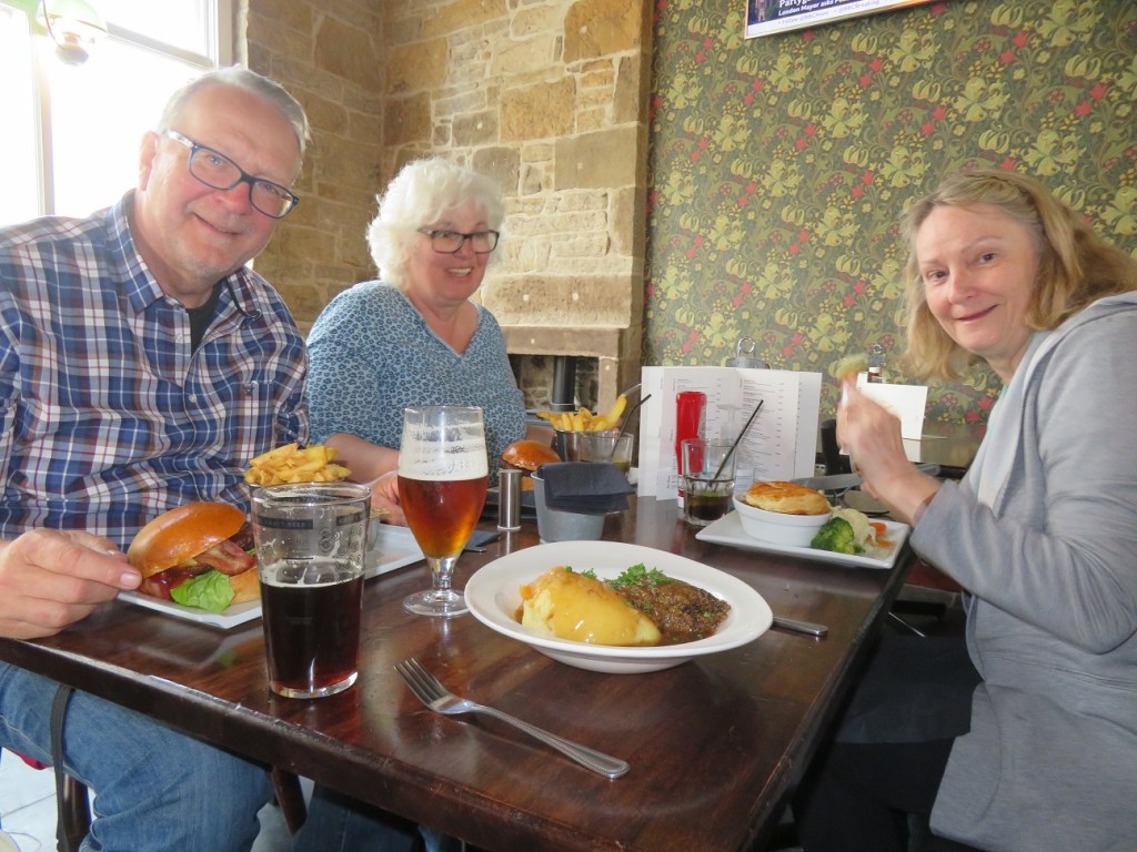 On our way back to the boat we decided to drop into a pub and have some dinner and give ourselves a night off from cooking on the boat. We also wanted to try some culinary delicacies that the Scots are known for – namely haggis!!! Fraser bravely ordered it and we all partook in sampling it – not too bad actually but we thinks it was dumbed down for the tourist.