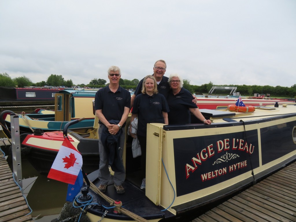 OK, so this morning saw us farewell Marlene and Wolfgang who are going to catch up with a couple of sets of friends down in southern England, before they head through the chunnel early next week and then home to Bremen for three months. Note that we have our Ange De L’Eau crew shirts on. There was also the flag ceremony where the Bremen Flag was replaced by the Canada/Kiwi/Ozzie flag as is the tradition. Ozzie flag not in the photo as doing some final adjustments.