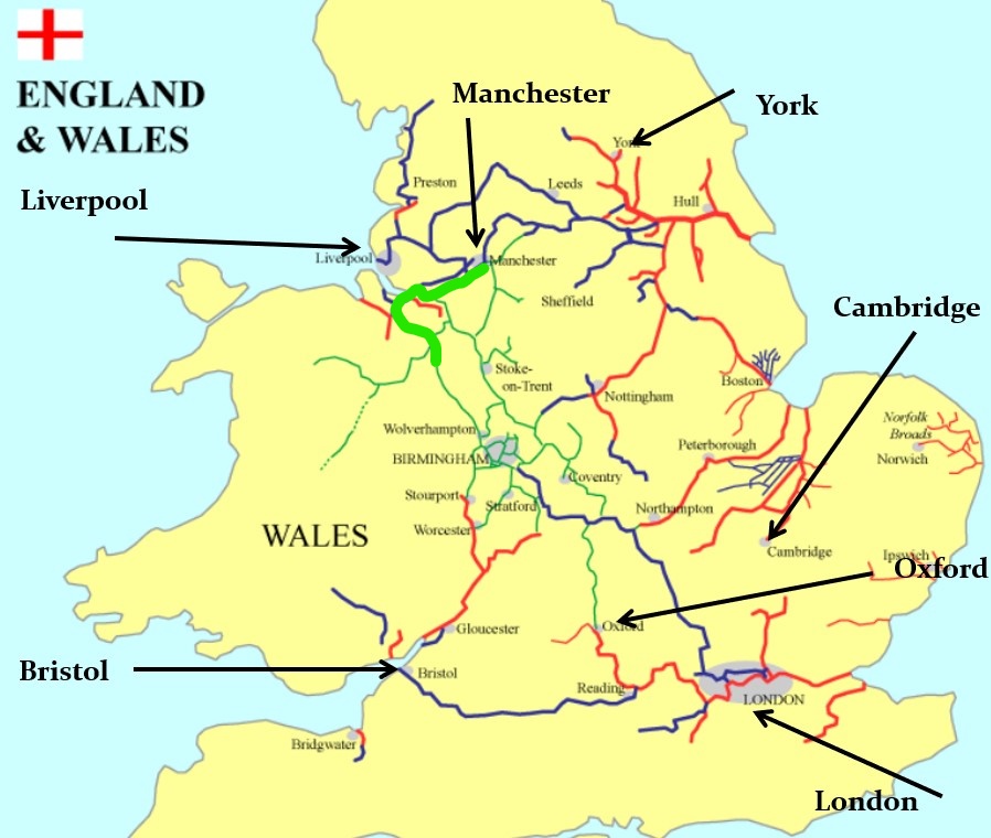 Our plan for the first week is to get from Nantwich which is on the Shropshire Canal to Manchester. By our calculations, it is 25 hours of cruising in five days. Sounds easy, but not so if the weather decides to turn ugly. The map above shows you the route which is highlighted in the fluorescent green.