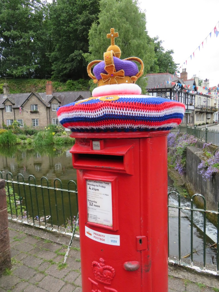 There were some very gifted people who could crochet in Lymm. They also did bollards up as guards like the ones you see wearing the bearskin hats during the Trooping of the Colours. The town had not held back when it came to the jubilee celebrations with many of the decorations including the bunting still up.