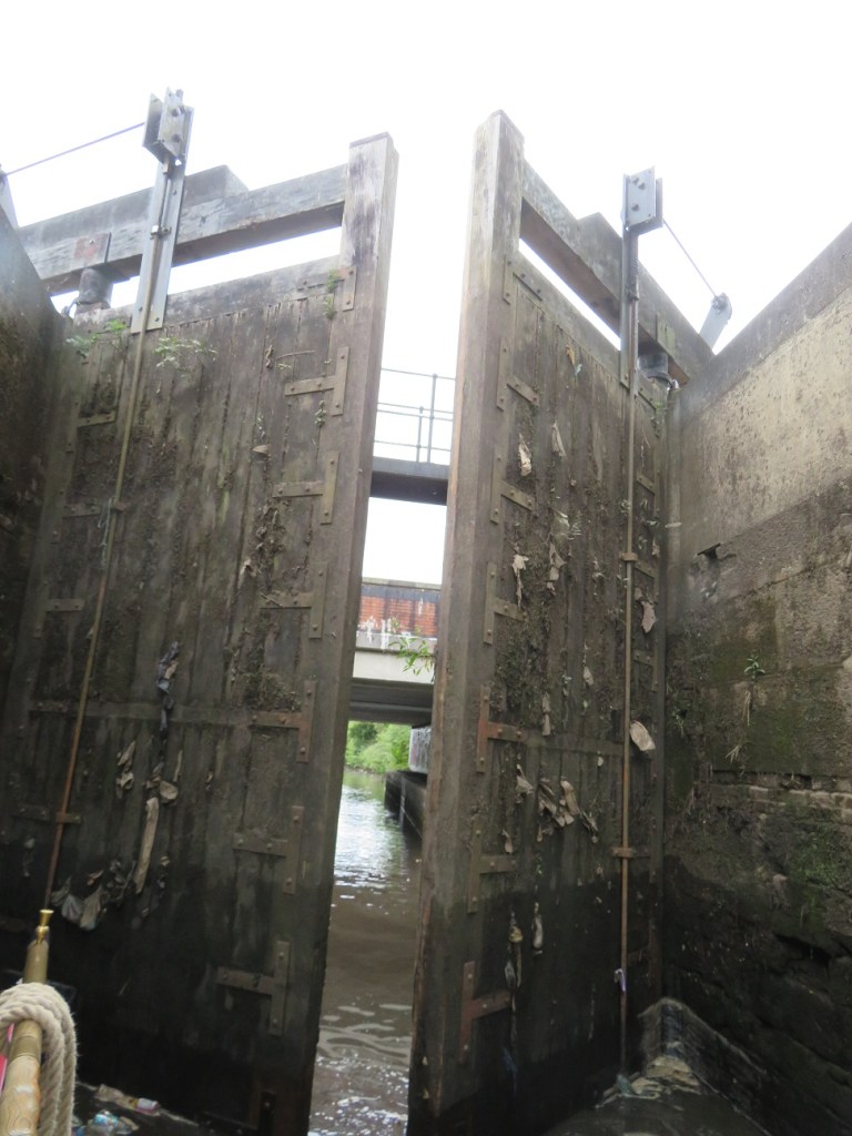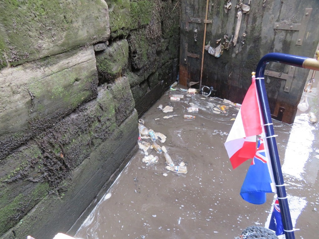 Into reverse again and into the next lock. We had lots of help from some locals to help pull us backwards as the water was making it difficult to use the propulsion of the motor.