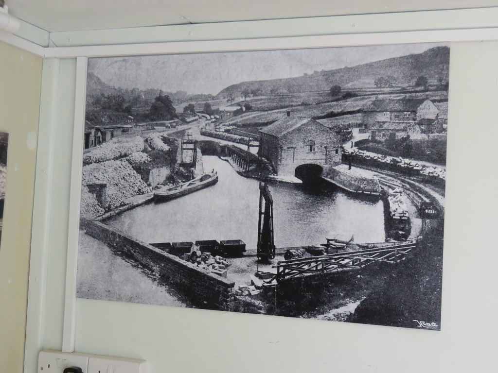 This was the basin at the heights of its industrial era. It was opened in 1796. The main objective of the canal was to improve the transportation of bulk manufactured goods and raw materials, particularly limestone from the quarries at Dove Holes, high up in the Peak Forest.