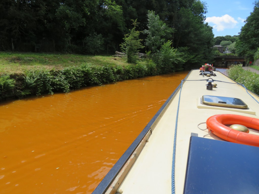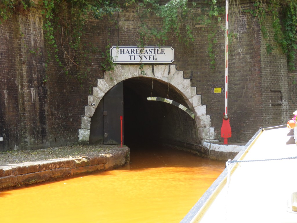 Due to the high iron content in this area, the water of the canals turns an almost bright orange. We moored up and spent a couple of hours loading up the pantry before we headed off again battling the wind all the way. The weather prediction for the day was for wind gusts up to 50kmh but it has felt a lot stronger than that. We just seemed to be struggling all the way until we got to the Harecastle Tunnel – guess what, no wind.