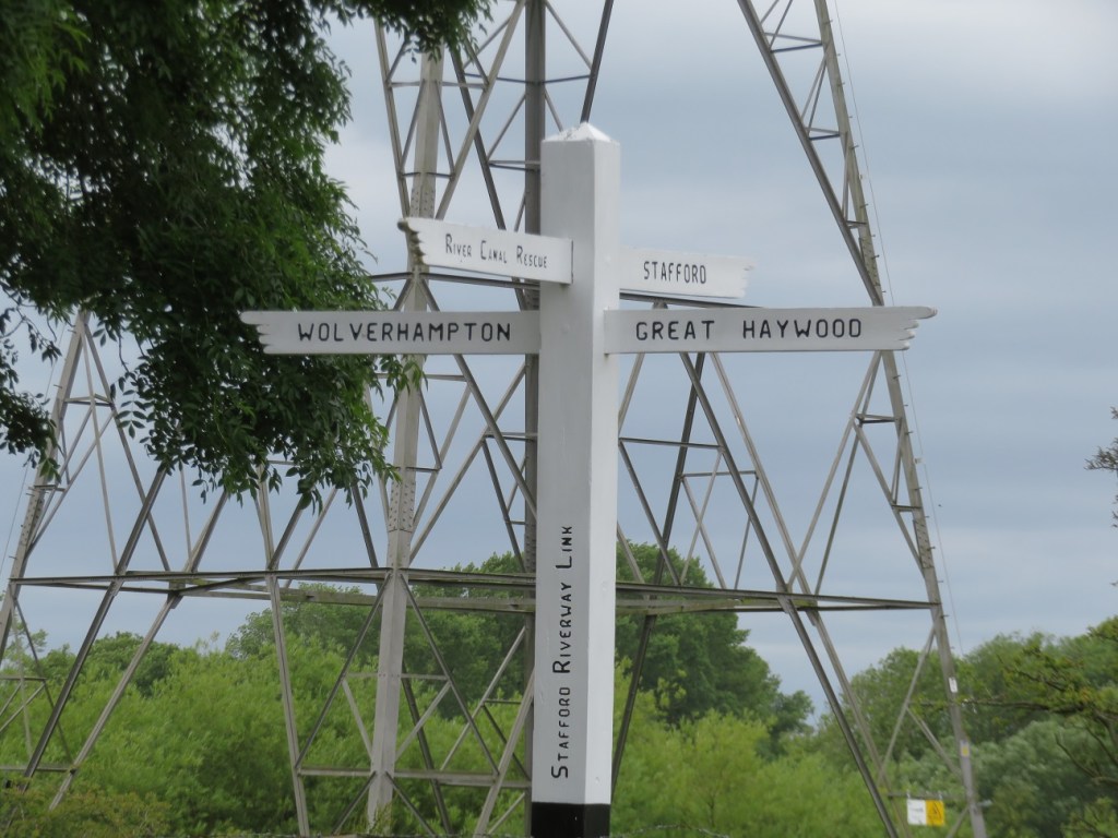 For those of you not familiar with the canals, this is a signpost guiding you in every which way. What did surprise us, was to see substantial earth works happening to reopen the old passage from the Staff and Worsc to the River Sow at this signpost location.