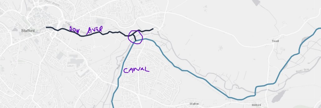 We came off the Trent and Mersey Canal and hung a right onto the Staffordshire and Worcester Canal.