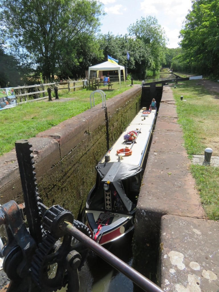 We were very fortunate when we did the three locks as they were all manned by volunteers. They explained to us that the pound between locks two and three have caused issues with flooding on the road that runs along the side of the canal and hence the locks are now manned. There is an important sequence when emptying the locks by using the side pounds first but many boaters do not know to do this. The water then builds up in the pound and runs over onto the road……oops.