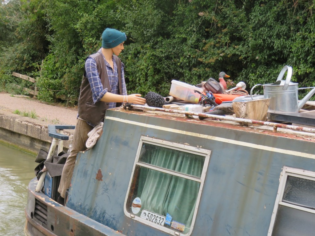 We came across this creepy vision. It looks like a person standing on the back of a boat which is meant to get you to slow down but when you get up close it is a mannequin all dressed up. It does work but hardly aesthetically pleasing.