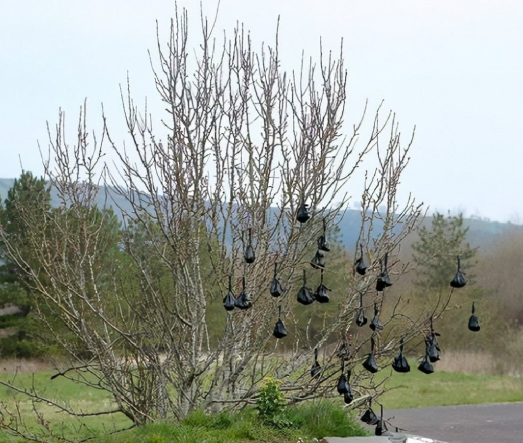 Why go to the bother of picking up the poop in the first place if you are just going to hang it from a tree. The other favourite place to hang your poop bag is on a fence. Are we missing something or is this just a quaint English tradition as we have never seen it in any other country we have travelled to.