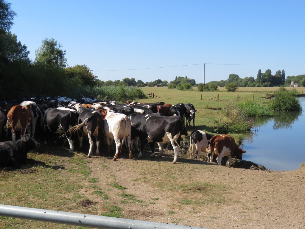 Once Di had gathered herself together, we headed out towards the Round House so that she could have a look. If you look closely at the above photo you can just make out the Round House building on the far right. This is as far as we got because of the bovine judder bars. They were all gathered in this spot as this was where there was the only shade. We have another week of very warm temperatures with some predictions of +36c west of London – that is us!!!
