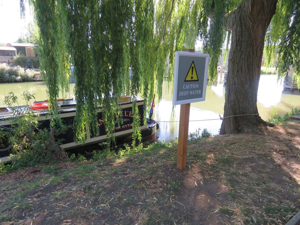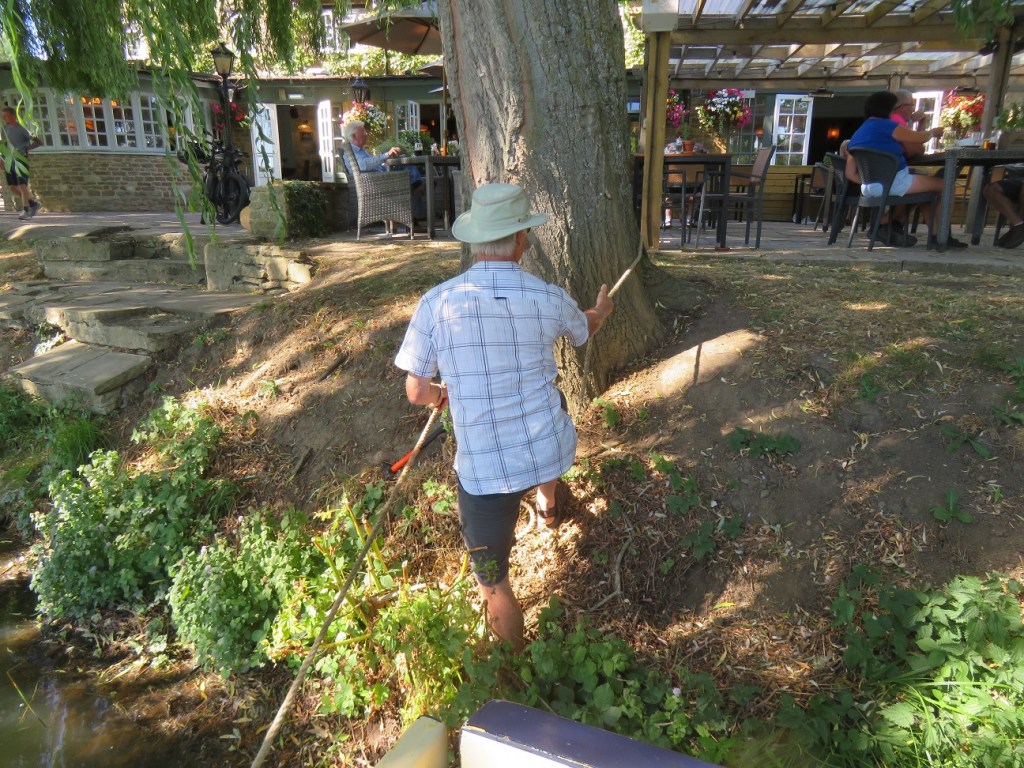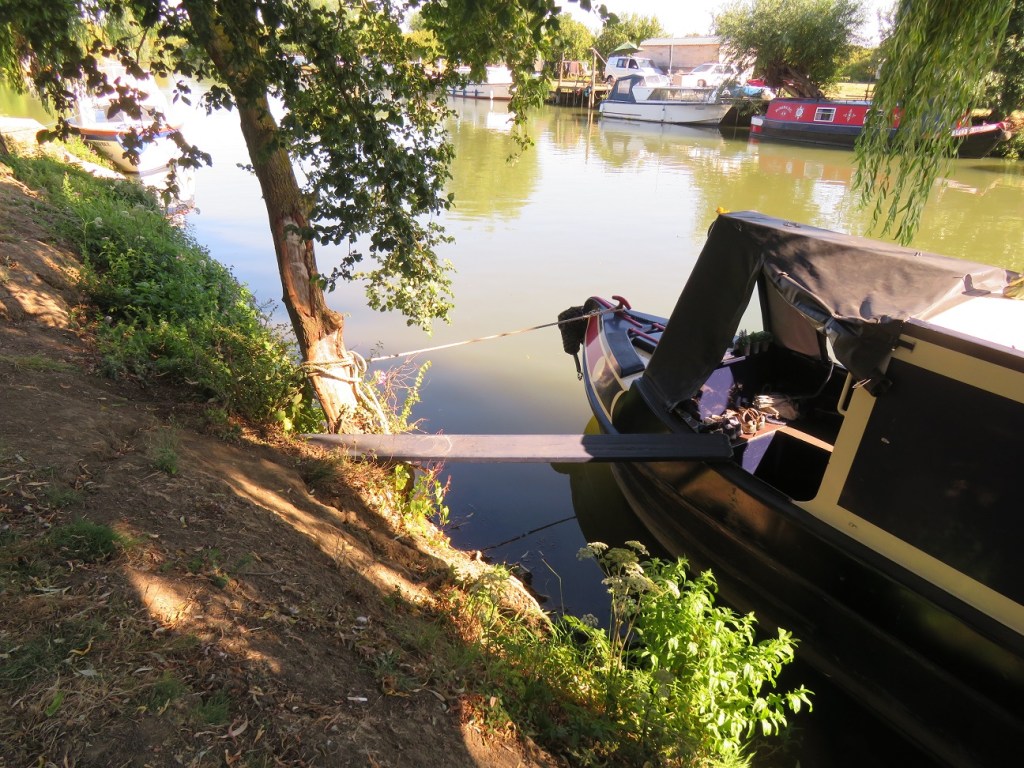 We totally lucked out!!! Not only did we get a shady mooring under a weeping willow but it was in the back yard of a pub. We did have to be a little inventive as to how to secure Ange for the night though.