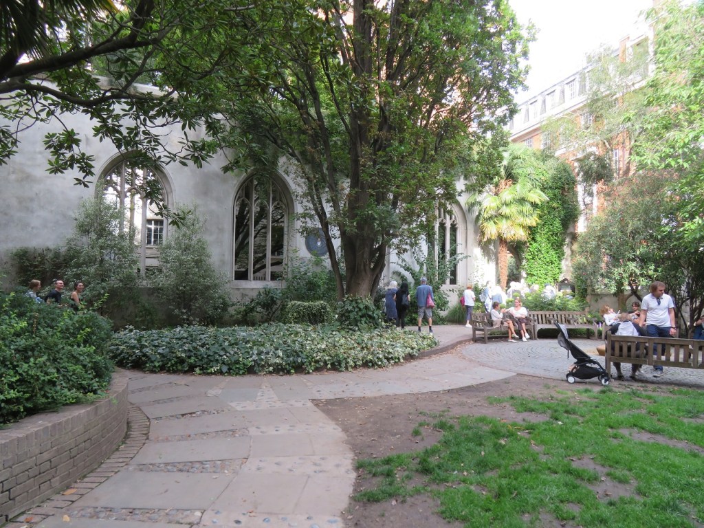 Following the Second World War it was decided not to rebuild St Dunstan’s, and in 1967 the City of London decided to turn the ruins of the church into a public garden, which opened in 1971. A lawn and trees were planted in the ruins. In the short period of time that we sat there to rest our weary legs, we could see the gardens were well utilised and not a hint of rubbish was to be seen.