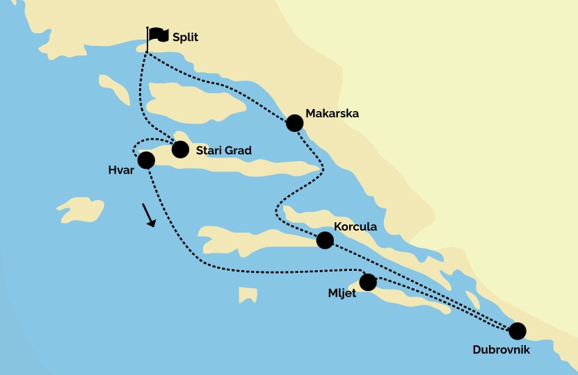 Our itinerary is as below with us leaving Split at lunch time today and returning to Split in one week.