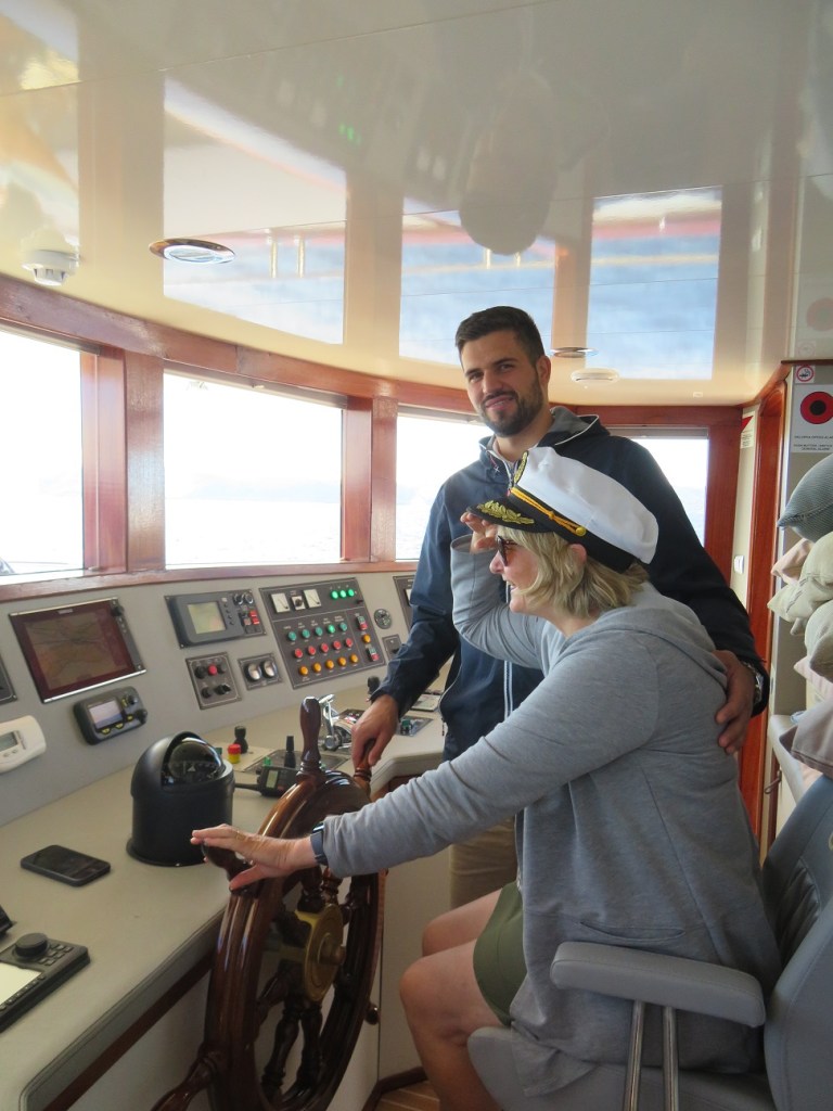 Whilst we were cruising to our swimming spot for the day, we popped up to see George the captain to see if he would explain some of the workings of this almighty boat.  George not only is the captain, but he and his dad own this boat plus another one that they contract out to Sail Croatia which is who we booked the trip through.