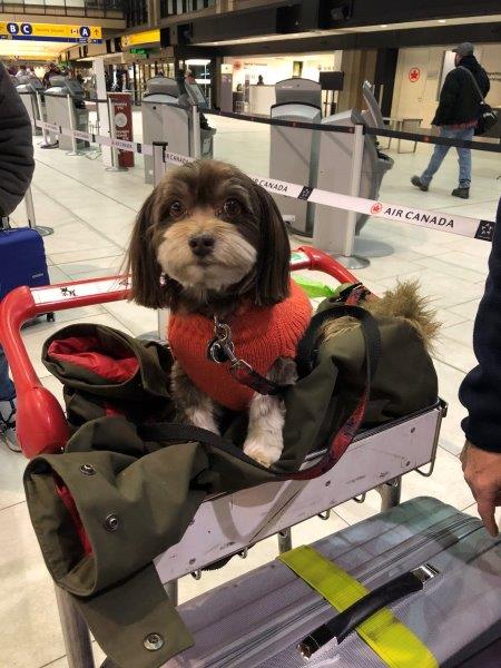 Linda was very kind to let us bring Toque along. This dog has a lot of frequent flyer points. It was a flight from Calgary to Toronto and then onto Washington DC. She travelled in the cabin with us on both flights and was a hit at the airports.