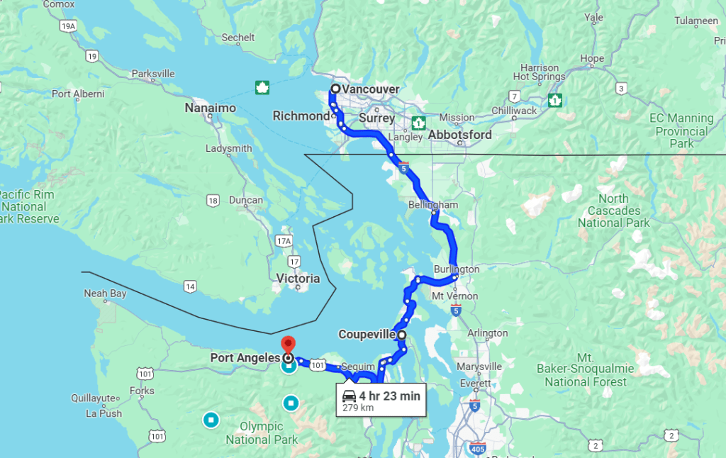 From here, it was then onto Port Angeles which is the gateway to the Olympic National Park. This distance of 280k has taken us nearly all day and we managed to get in and settled just after dark. This driving is tiring business. Toque is travelling well and slept most of today due to the rather long walk she went on yesterday.
