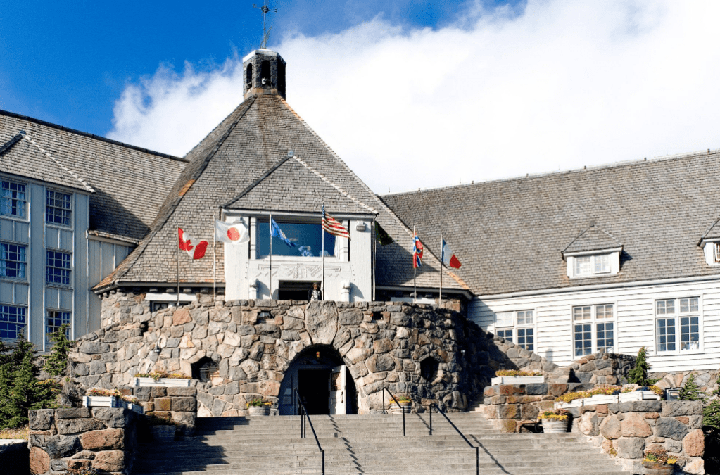 The Timberline Lodge is on the south side of Mount Hood and built in 1936-1938. It is a popular tourist attraction and a ski resort, with the longest skiing season in the U.S. It won’t be the longest this year though as there was bugger all snow. It was the exterior of the Overlook Hotel in The Shining (1980).