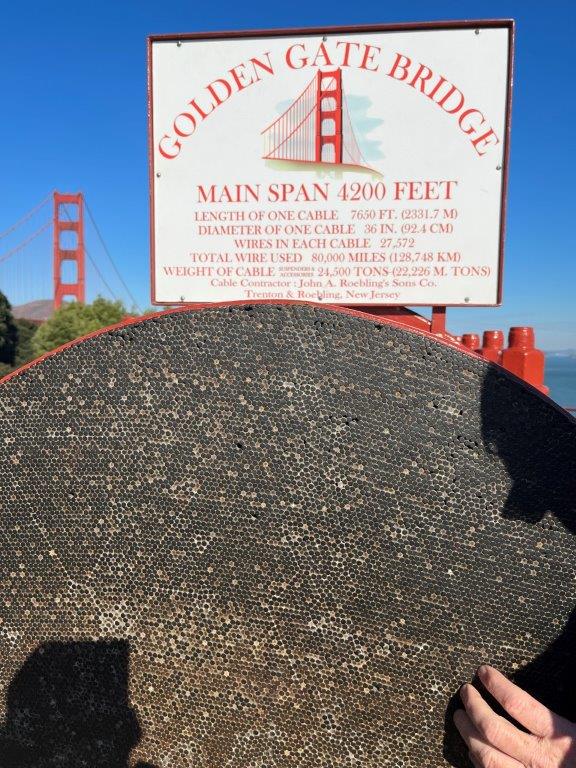 On the south side of the bridge a 36.5-inch-wide (93 cm) cross-section of the cable, containing 27,572 wires, is on display.