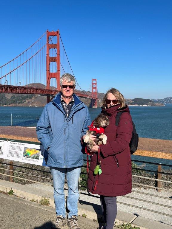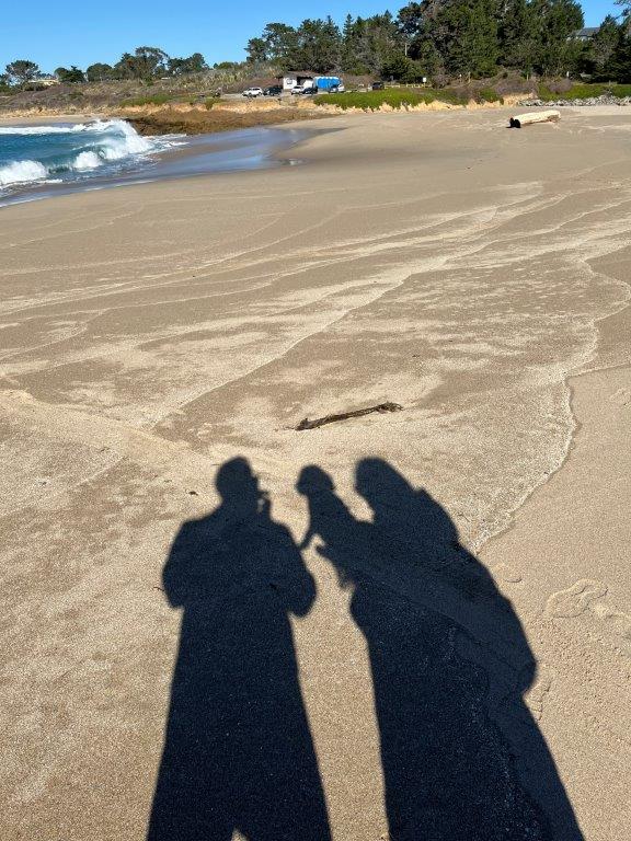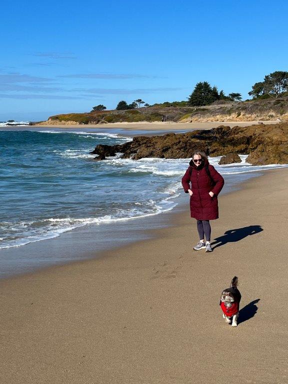 It was a quick trip out of San Francisco, and we hugged the coast heading south. There was a plethora of choices for us to have some beach time and for Toque to have her first exposure to sea and sand. It looks crazy with us wearing our puffy jackets, but the wind was cool even though the air temperature was +17c. Toque and Di actually got caught in a wave. Toques reaction was that of a stunned mullet as to how suddenly she was in water up to her tummy when just before she had been racing around on the sand. Di just felt stupid and ended up with wet sandshoes.