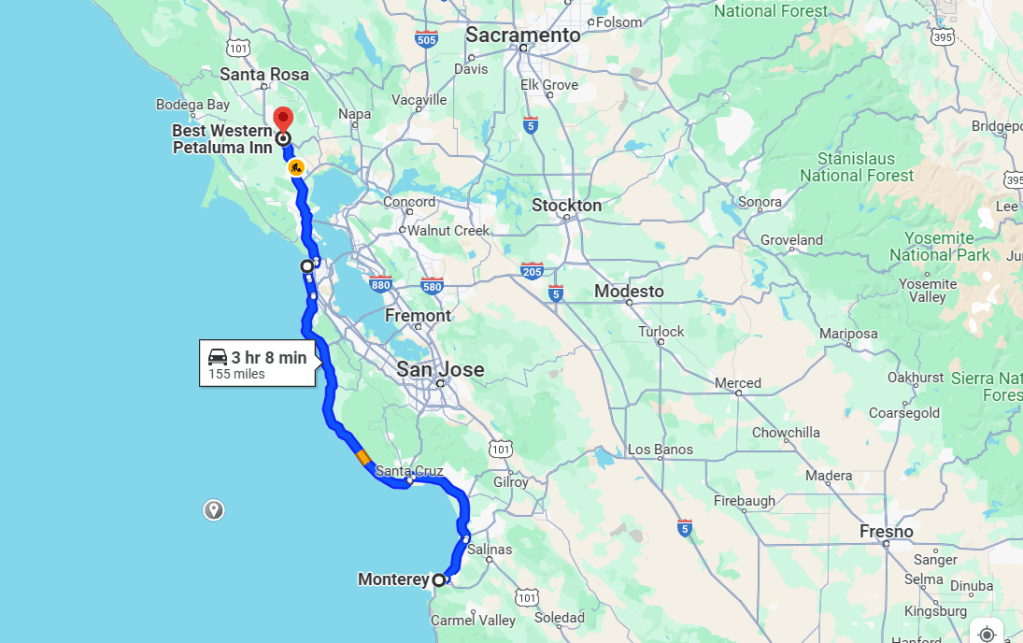 Our total distance was about 200 kilometers, so we got into Monterey at a reasonable time which allowed us to settle into our motel and then head out and explore. Neither of us knew anything about the place though the name seemed familiar.