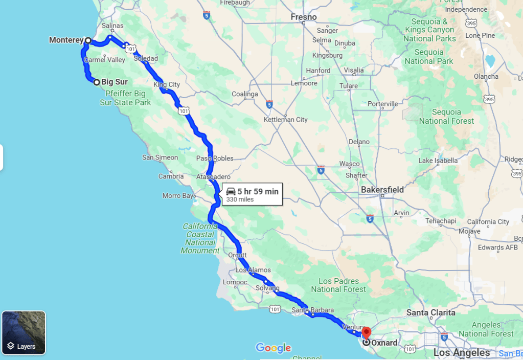 Last night we were delivered a bit of a punch to the stomach. We were very much looking forward to what is meant to be one of the most spectacular part of the coastal drive which is between Monterey and Santa Barbara