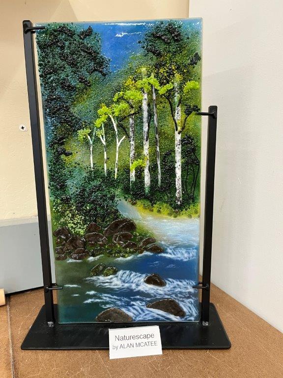 This is an example of the glass fusion that they do in the Glass Arts center in the park. Some of the pieces of work are stunning. Di isn’t going to put her attempt on the post as it is rather mediocre – in fact, downright awful. Next year she hopes to come back invigorated and get stuck into it more and do that one very special piece.