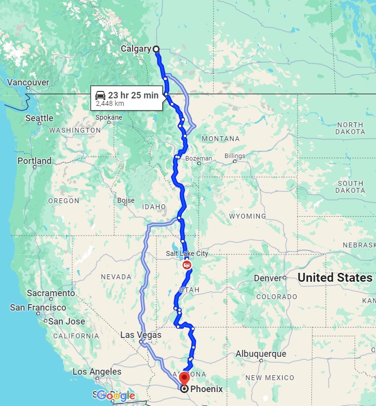 So at lunchtime we departed Venture Out and headed directly north towards the Grand Canyon. Below is the route that we hope to take providing the weather does not get in our way. It will be approximately 3,000 kms door to door.