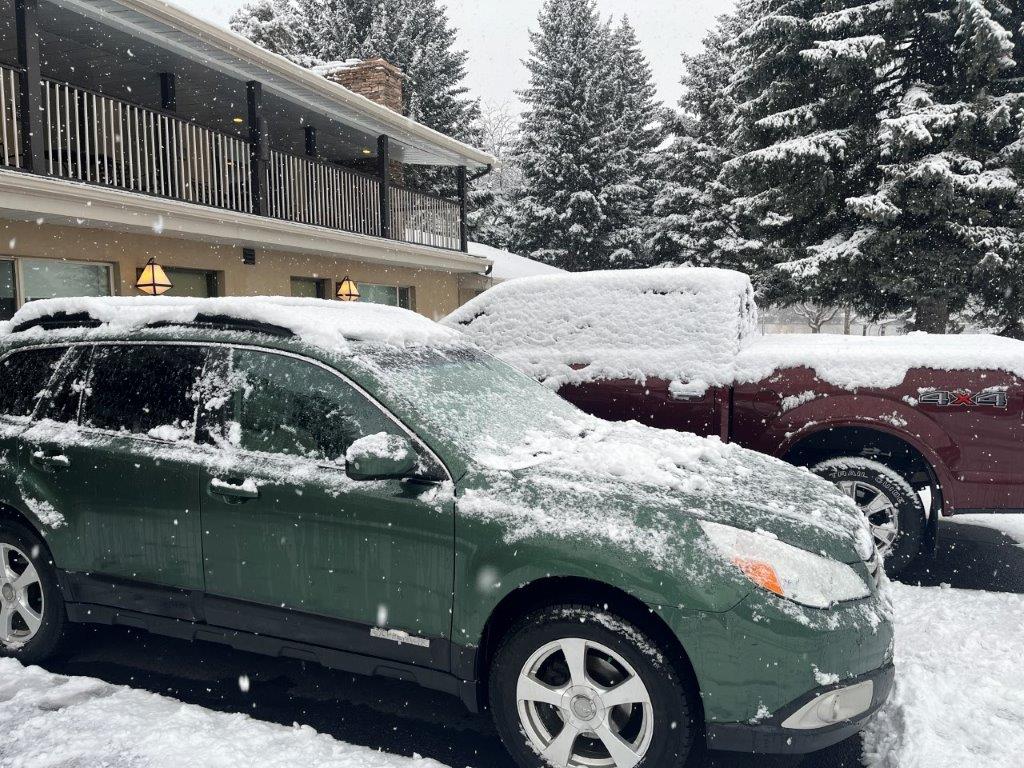 Things didn’t look too well when we woke up to snow which wasn’t predicted. This photo was taken 15 minutes after the initial snowfall was cleared off the car. The cars doors were frozen shut and it took 20 minutes of running it in a standing position for it to warm up. It snowed for four hours overnight which meant that a more scenic route we were going to take had to be cancelled. We drove the first 1 ½ hours in snowy and close to white out conditions and then the weather lifted as soon as we went over the great divide.