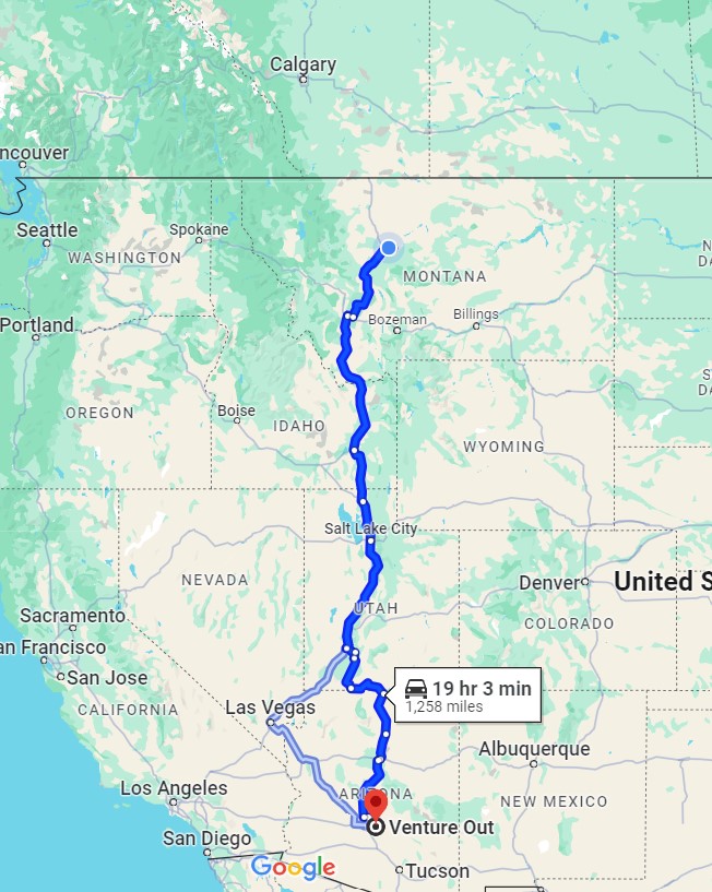 This has been our route since we left Phoenix. We estimate that we will do just over 10,000 kilometers from the time that we left Calgary to the time that we return. Whew!! To give the Australians some perspective – it is 3846 kilometers from Sydney to Perth – so, that would be a return trip plus another 2/3rds of a trip back.