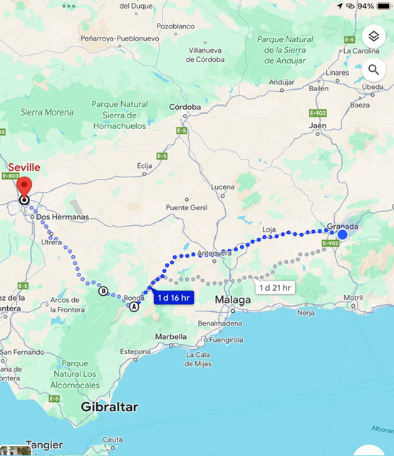 So this was the trajectory for today. Our first stop was to be Ronda but the road out of Granada happened to take us along part of the train route we had come in on.