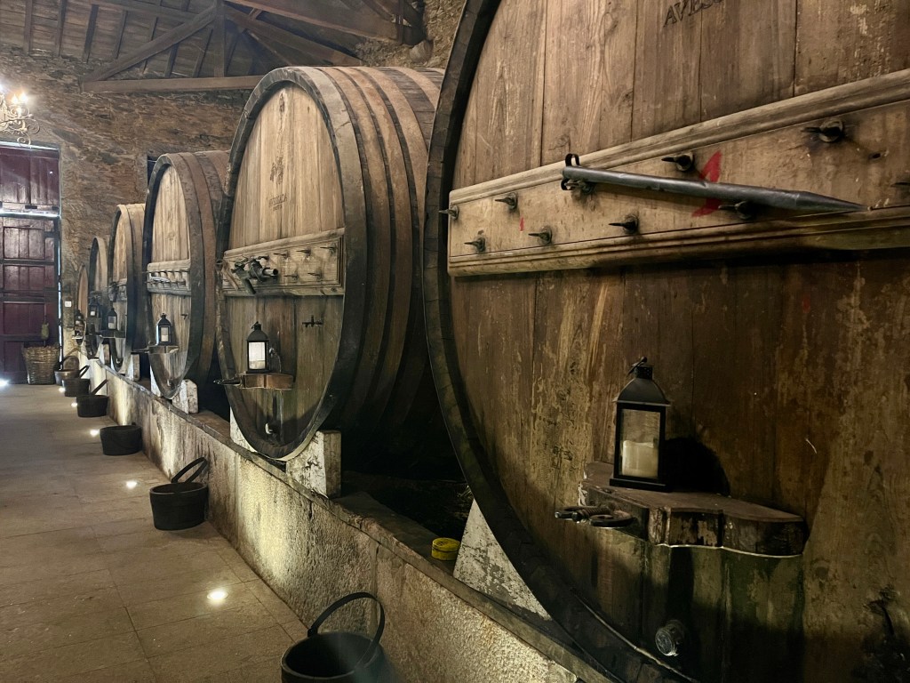 It was then into tour mode where they showed us where the grapes are crushed by foot. They pay you to do this which isn’t surprising as it is a five-hour process with toilet stops only. You walk in a line with your arms linked and you do it to a beat to get the rhythm going. Why by foot – it is to do with the temperature of the human body!!! That kind of blew us away. The couple with us had done the trip previously in September and they said they had had the pleasure of treading the grapes.