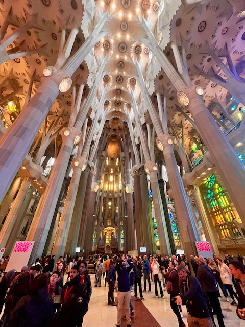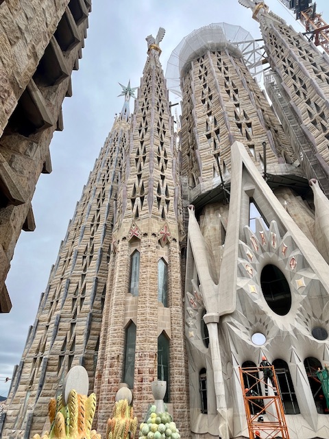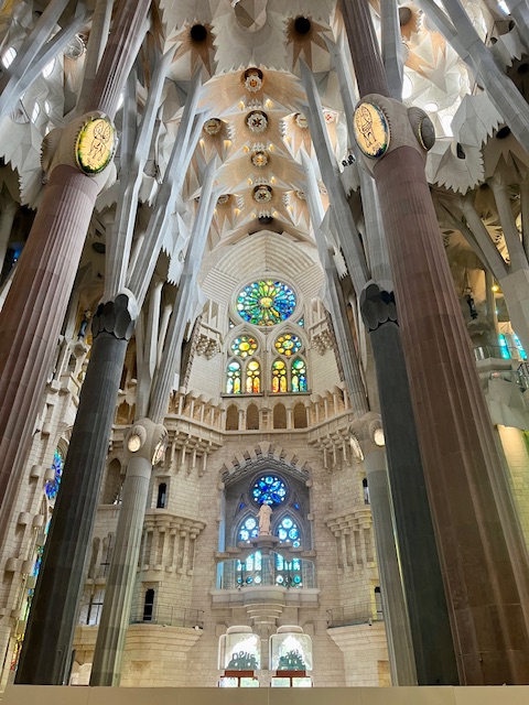 We had booked for a guided tour (in English this time🤪) and the guide was very good. Above is the mock up of the cathedral which will have the main spire finished in 2026. The significance of 2026 is that it will be 100 years since the death of Gaudi. Here is just an aside – Gaudi died at the age of 73 because he was taken out by a tram……..bit of a theme going on here. The cathedral was started in 1882 and will be completed in 2033 – another significant date – it will be 2,000 years since the death/rebirth of Christ.